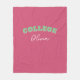 Stay cosy in your college dorm with this Orange Retro Bold Custom College Name Blanket. This rectangular blanket design showcases bold lettering and script cursive in pink and green shades. Perfect for snuggling up for late night socials, or simply adding a custom accent to your dorm room. This is a perfect gift for graduating seniors or college freshman.