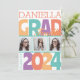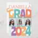 Retro Bold Oversized 3 Photo Grad Party Invitation for trendy colourful and modern high school senior or college graduate with hippie vibes! Personalise the text and add your senior portraits quick and easy. These unique graduation announcements are the perfect addition for any vintage 60s 70s or 80s loving graduation invitations!