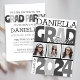 Retro Bold Oversized Black and White Grad Party Invitation for trendy colourful and modern high school senior or college graduate with hippie vibes in a grayscale colour scheme! Personalise the text and add your senior portraits quick and easy. These unique graduation announcements are the perfect addition for any vintage 60s 70s or 80s loving graduation invitations!