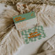 A Vintage retro boho chic green and cream checkered business card. As you see it features a handmade psychedelic groovy boho abstract green checkered pattern with a orange groovy font. It has nostalgic seventies and sixties vibes and colors and groovy fonts. With customizable name and profession and hand drawn social media icons. That you can change by clicking on the personalize button. So Grab it and make you business unique and catchy.