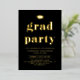 Invite family and friends to your graduation with this customisable gold foil pressed grad party invitation. It features retro bold typography on a black background Personalise this gold foil graduation invitation by adding your event details. This modern graduation party invitation is available in other foil colours.