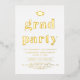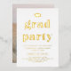 Invite family and friends to your graduation with this customisable gold foil pressed grad party invitation. It features retro bold typography. Personalise this gold foil graduation invitation by adding your event details. This modern graduation party invitation is available in other foil colours.