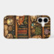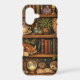 A cosy retro-inspired design featuring a charming bookshelf filled with vintage books, delicate botanical accents, cute woodland animals and a comforting cup of tea or coffee.