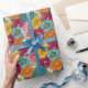 This is a colorful style image featuring an array of large, vividly hued flowers in shades of orange, blue, pink, yellow, and red. Each flower boasts detailed petals with rich textures, creating a lively and cheerful composition. The background subtly complements the bright blooms, enhancing their beauty. Perfect for adding a burst of nature-inspired joy to any space, this pattern can inspire feelings of warmth and happiness. Ideal for use on textiles, wallpapers, or as a decorative print.