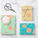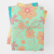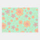 Retro Botanical Floral Pattern Wrapping Paper Sheets. A cute mix and match of green, yellow and turquoise colours by Dreaming Cocoon. Vintage pattern orange colour flowers with the summer vibe, perfect gift wrapping for those who love flowers and bright colours!