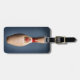 Antique retro bowling pin on blue background printed on a luggage tag for the bowling bag. High quality printing on a durable acrylic with a leather strap. Personalise with your info on the back. Looks great on luggage or bowling bags.