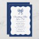 Set the tone for a stylish and trendy bridal shower with this Retro Modern Bridal Shower Invitation, featuring a wavy frame and a vintage-inspired bow adorned with floral fabric. The combination of elegant curves, and a chic navy and royal blue colour palette creates a perfect blend of retro charm and modern sophistication. If you need any help customising your invitation, please let me know—I would love to help you!