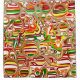 Brown, burgundy, lime green and yellow retro colours, or Fall colours earth tones digital fluid art pour painting cells.