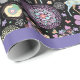 This colourful design is full of deer, clovers, and abstract purple shapes.