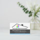 A retro columnar design with the colours of white, dark grey and blue. Over at the top is a rooftop home with a colourful window. Below this motif is the business name. The corresponding dark grey layer has your prestigious name and job title on the left. Across the vertical white line lies the phone, email and address details in their respective buttons. Near the base is the slogan caption "call me for a free quotation", you can change the caption to suit your service needs.