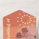Abstract shapes retro vintage 70s style unique all in one budget photo sunburst wedding invitation with RSVP card included and "the wedding of" bold typography in a vibrant trendy modern yellow, rust orange and terracotta earthly chic summer colour palette. +++++++ Please note that all the colours are changeable. ++++++++++++ The invitation is suitable for casual stylish summer contemporary weddings.