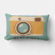 This throw pillow is perfect for photographers and old school shutterbugs with its illustration of a retro style camera in gold, brown and cream agasint a light aqua blue background. Use the template field to personalise it with your name or short message. Makes a great personalised gift.