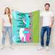 This Retro Camper / Trailer and Car Fleece Blanket features a mid century modern, minimalist cartoon drawing that will leave you ready to take to the open road. An homage to the 1950s, this design features a vintage turquoise car with white top, pulling a kitschy travel trailer to its final destination. The perfectly restored, retro RV has a hot pink lower half, white top half, and a turquoise lightning bolt separating the two. The door in the side of the camper is also turquoise. The final accent is the hot pink wing protruding from the back of this home on wheels. The happy campers are motoring down a grey road. The roadway is surrounded by lush, green grass. In the background, we can see the teal silhouettes of a veritable forest of cedar trees, against an aqua sky with puffy, light blue clouds. This design is perfect for everyone from retired hippies, fledgling hipsters, or anyone who wants to relive some great childhood memories. The best part is that no one is asking, "Are we there yet?"