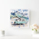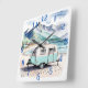 Retro Camping Caravan Beach Scene Square Wall Clock