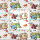 Retro Camping - Happy Camping. Old school fun! Retro caravans, deck chairs, bunting, parasols, tents, fir trees.