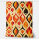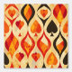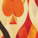 This artwork features a bold and vibrant pattern inspired by classic playing card suits, including hearts, spades, diamonds, and clubs. The design incorporates these iconic symbols into elongated, teardrop-shaped forms, set against a warm, gradient background of reds, oranges, and yellows. The stylised suits are outlined in black and red, creating a striking contrast that highlights the dynamic shapes and colours. The overlapping elements and vintage texture evoke a sense of nostalgia, blending mid-century modern design with a playful twist.