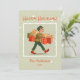 Hey, Mr. Postman! Where's my Happy Holidays card? Is it on the way. Looks like he is working hard to make it happen. Here is a cute retro holiday card in the fun midcentury tradition. It's a good one for you to send or give to friends who may be expecting or hoping to hear from you over the Christmas time, in a lighthearted seasonal way.