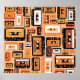 music, background, vintage, pattern, seamless, teen, illustration, cassette, grunge, tape, 1980s, retro, orange, old, entertainment, sound, record, collection, audio, abstract