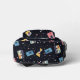 This imaginative bag showcases a vibrant array of vintage cassette tapes scattered across a dark, starry background reminiscent of outer space. Each cassette features unique colours and designs, floating amidst small, colourful dots and stars that enhance the cosmic theme. The pattern evokes a sense of nostalgia, blending retro music culture with a galactic aesthetic, making it a captivating choice for various creative applications.