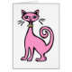 A retro style pussy cat in pink, with a diamond studded golden collar. An original drawing by Nicolette Amanda Berry.
