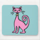 A retro style pussy cat in pink, with a diamond studded golden collar. An original drawing by Nicolette Amanda Berry.