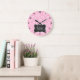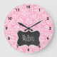 Retro Chalkboard Carnation Pink Damask Pattern Large Clock
