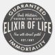 A vintage style potion label for the elixir of life with white chalk text on a black chalkboard textured background. This is designed to be used to label a cocktail or decorations at a Halloween party or any other spooky themed event.
