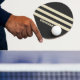 The Retro Charcoal Three Stripes Ping Pong Paddle features a sleek, minimalist design with bold charcoal stripes that exude an air of modern sophistication. Its strikingly simple yet powerful look makes it a perfect fit for those who prefer a cool, understated style with a personal touch. Customise it with your name for a truly unique statement piece that blends effortlessly into any game environment, whether it's casual or competitive. This paddle's clean and stylish aesthetic will stand out with every serve and spin.
