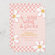 Retro Check Young Wild Three Pink Daisy Invitation