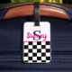 Retro Checkerboard Neon Pink Name Monogram Luggage Tag