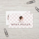 Turn heads with this chic light pink checkerboard design, featuring a stylish retro circle photo frame—perfect for showcasing your face or logo. Personalize with your name, professional title, and specialty to instantly convey your expertise. The reverse side mirrors the elegant checkerboard pattern and provides space for social media icons, contact details—making it easy for clients to reach you. Fully customizable to match your brand colors and style, this business card combines vintage charm with modern sophistication. Whether you’re an esthetician, skincare specialist, makeup artist, or beauty professional, this card is a standout way to present your brand with confidence and style. Design and layout by © Moodthology