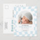Retro Checks Blue Boy Photo Birth Announcement Postcard