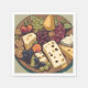 Paper napkins with a retro graphic picture of a cheese plate with walnuts and grapes on it. Excellent for anyone or any business involved with gourmet food, catering, or fruit.