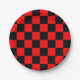 Retro Chequerboard Pattern Red & Black Novelty Paper Plate