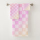 Retro Chequerboard Peach Fuzz Pink Gradient Bath Towel Set
