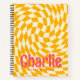 Retro chequerboard swirl wave add name yellow pink notebook