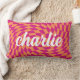 Throw pillow featuring a hot pink and orange, twisted chequerboard pattern and your name in a white, retro style font.