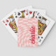 Playing cards featuring a light blush pink, twisted chequerboard pattern and your name in a red, retro style font.