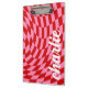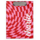 Clipboard featuring a pink and red, twisted chequerboard pattern and your name in a white, retro style font.
