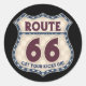 Route 66 road sign, with retro lettering, chequered background, striped sides and 3-d effects. Get your kicks on in this groovy tee design!