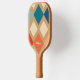 This retro pickleball paddle design features a chequered background with beige, blue and orange diamonds, with your name in bold script text for a look that is simple and stylish, yet professional. Makes an excellent gift for Christmas, birthday, Father's Day, Grandparents' Day, graduation, and more.
