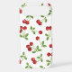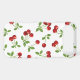 Nostalgic design featuring ripe red graphic cherries and green leaves against a white background.