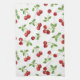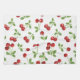 Nostalgic design featuring ripe red graphic cherries and green leaves against a white background.