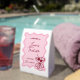 This retro style pink and burgundy birthday party welcome sign features a line drawing of a cherry cocktail tied with a bow, perfect for setting the tone for a fun-filled celebration. Pop them on tables, pedestals, and anywhere you want to welcome guests and advertise your party!