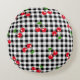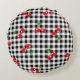Retro Cherry Gingham Cute Red & Black Chequered Round Cushion