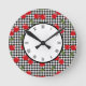 Retro Cherry Gingham Round Clock