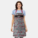 This chess cloth apron has a retro chess board pattern with chess pieces and an atomic symbols chess board. Personalise with your name. A great chess pattern perfect for any mid century modern lover or chess lover. You can make the chess pattern larger or smaller on the apron.