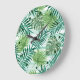 Retro Chic Green Palm Leaves Watercolor Art Large Clock