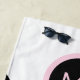 Hit the beach or pool with a stylish designer beach towel in a contemporary pop art geometric pattern with a retro feel. This custom design has angled black stripes and pink colour block with a prominent matching round frame surrounding your monogram. Personalise with your desired monogram for a unique beach towel that is uniquely you.
