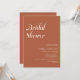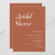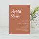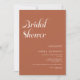 A Retro chic simple white on boho beige and bohemian terracotta earth tone bridal shower invitation with a retro modern twist script font. All the colours are editable.